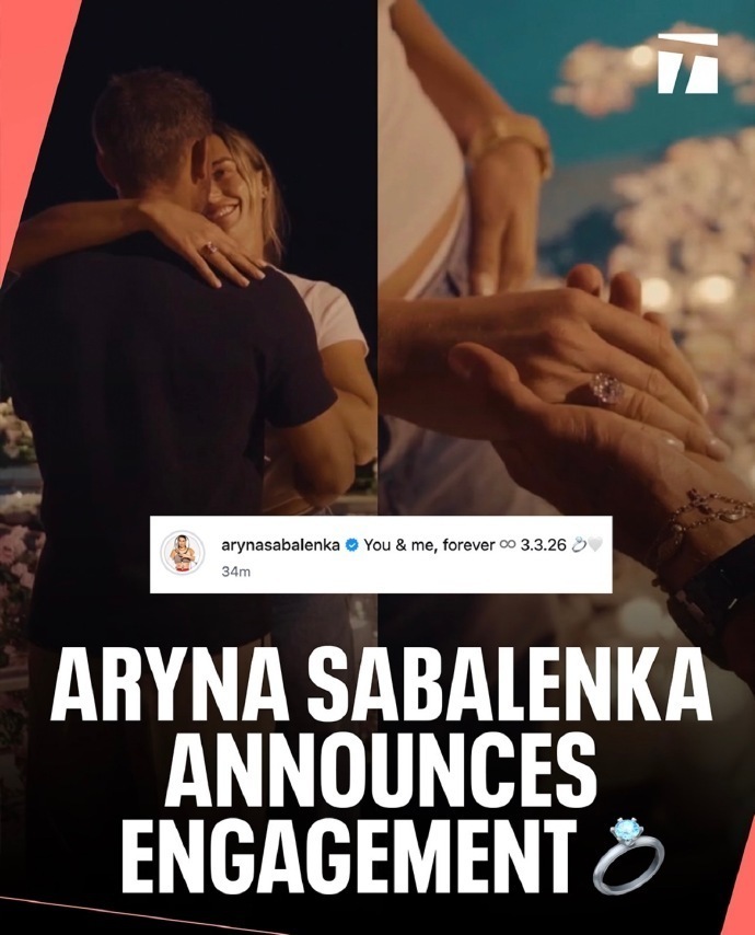 北京时间3月4日,现役网球女单世界第1萨巴伦卡,在社媒发布喜讯,她晒出男友乔治奥斯-弗兰古利斯向其求婚的视频,并且甜蜜写道:“你和我,永远!”。