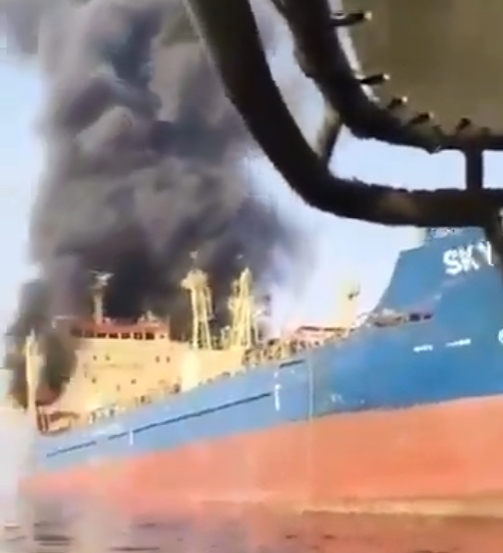 悬挂帕劳国旗的油轮“SKYLIGHT”号在该港以北五海里处被击中,船体进水,渐渐沉没。船上20名船员全员撤离,其中4人不同程度受伤。