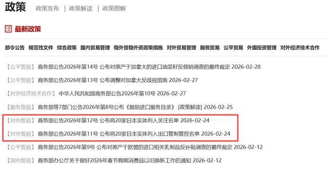 当日,商务部发布公告,将20家日本实体列入稀土出口管制名单,禁止向这些实体出口两用物项,禁止将原产于中国的两用物项转移或提供给这20家实体,而正在开展的相关活动立即停止。同时,还将20家日本实体列入关注名单,出口两用物项时要提前申请许可。