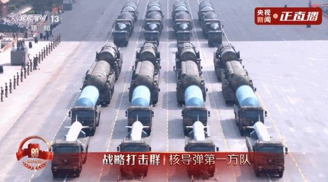 核导弹第一方队震撼登场。受阅的“惊雷-1”空基远程导弹、“巨浪-3”潜射洲际导弹、“东风-61”陆基洲际导弹、“东风-31”新型陆基洲际导弹,首次集中展示我军陆、海、空基“三位一体”战略核力量,是维护国家主权、捍卫民族尊严的战略“王牌”。