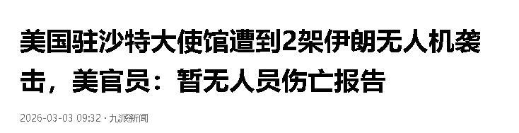 第一记重拳,已经狠狠的砸向了美国在中东的外交核心,根据沙特国防部的最新消息,伊朗的两架自杀式无人机,直接就袭击了美国驻沙特大使馆。